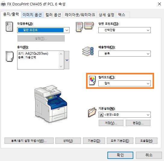 4. "컬러모드(C)" 를 '컬러'로 맞춰주신다음 "인쇄" 버튼을 누르시면 컬러로 나옵니다.
